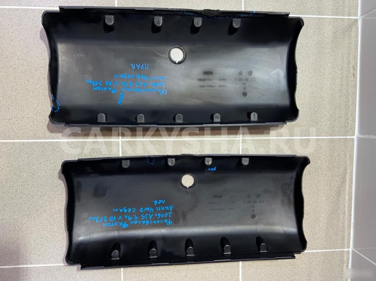 Примечание:Накладка декоративная (на ДВС)-смотрите фото -цена за пару.Разбор Фольксваген Фаэтон (Volkswagen Phaeton) 2006 год, двс AJS 4.9 л. V10 313 л. с. дизель, акпп, 4WD, кузов легковой седан, левый руль, цвет синий хамелеон.