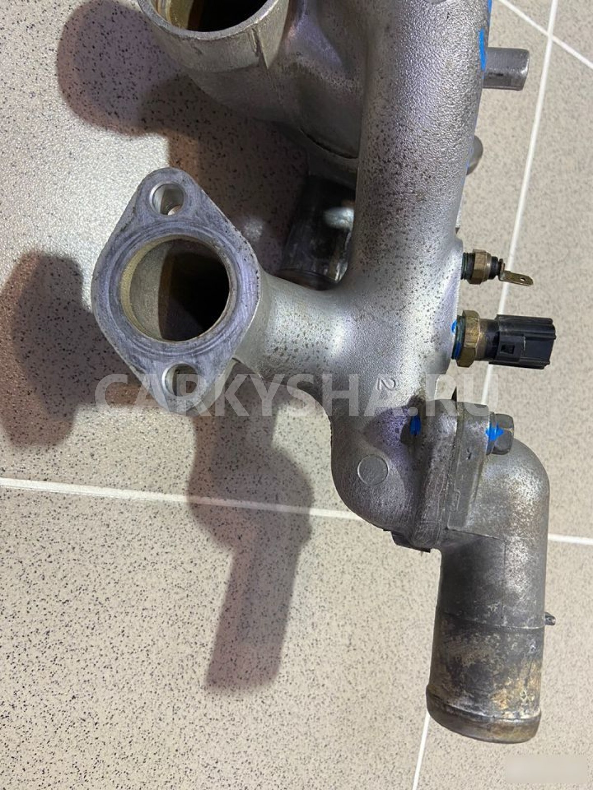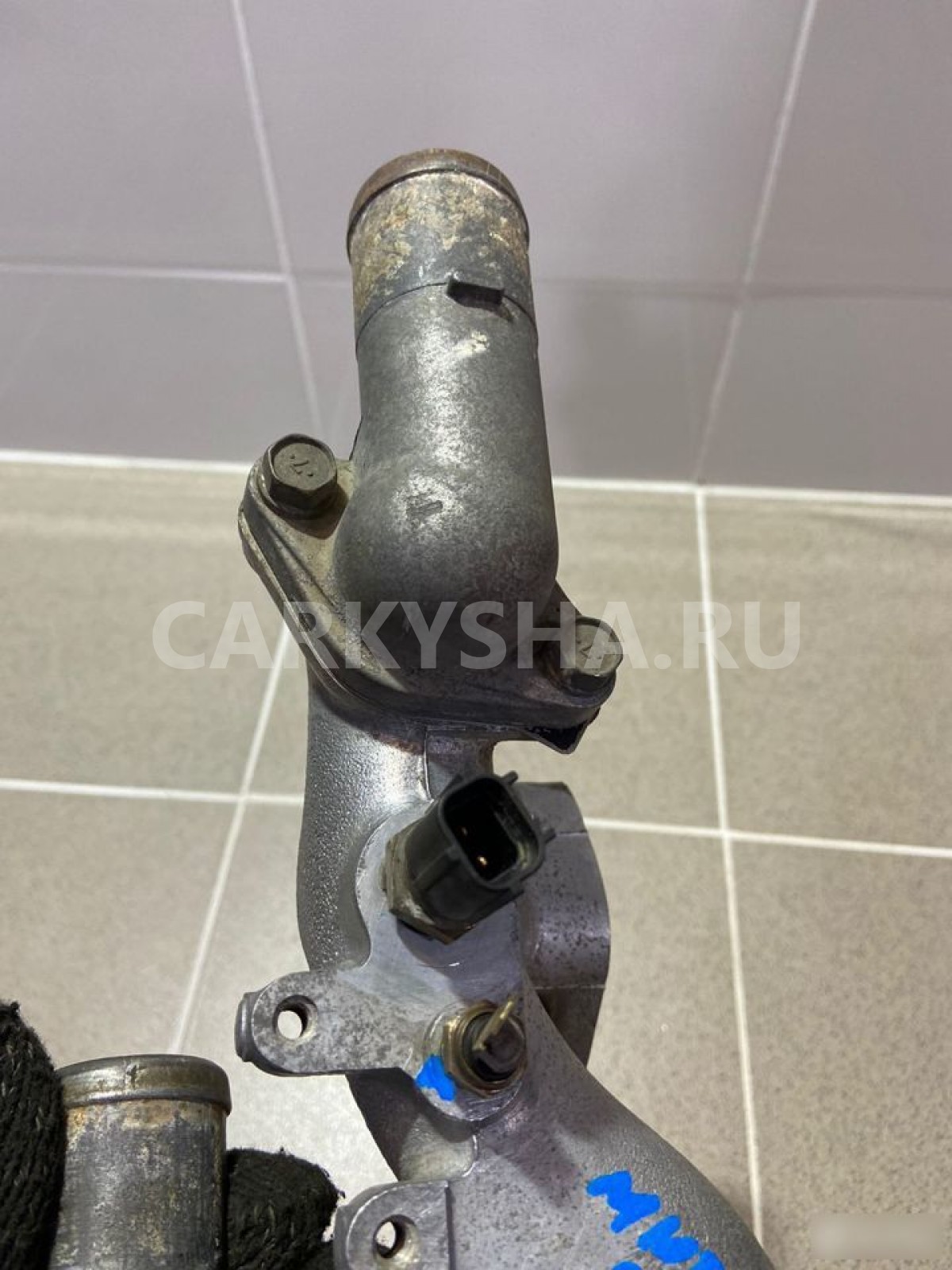 Примечание:Корпус термостата. Разбор Митцубиси Диамант 1996 года (Mitsubishi Diamant 1996 года), модель двигателя 6G73 2.5 л. 200 л. с., акпп W4A42 3312, кузов F41A легковой седан, правый руль, полный привод, цвет серый.