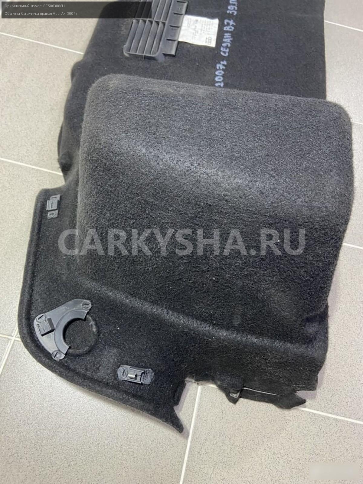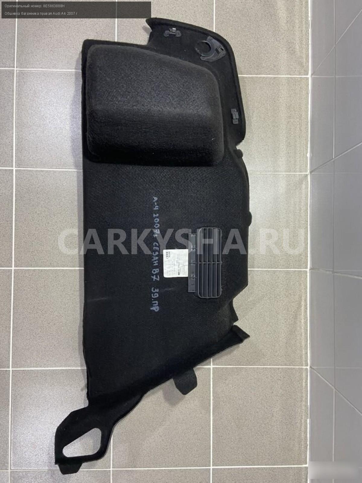 Примечание:Обшивка багажника правая.Разбор Ауди A4 2007 год (Audi A4 2007 г.) двс ALT 2.0 л. бензин 131 л. с., акпп, передний привод, кузов легковой седан B7, цвет чёрный, левый руль, по запчастям.
