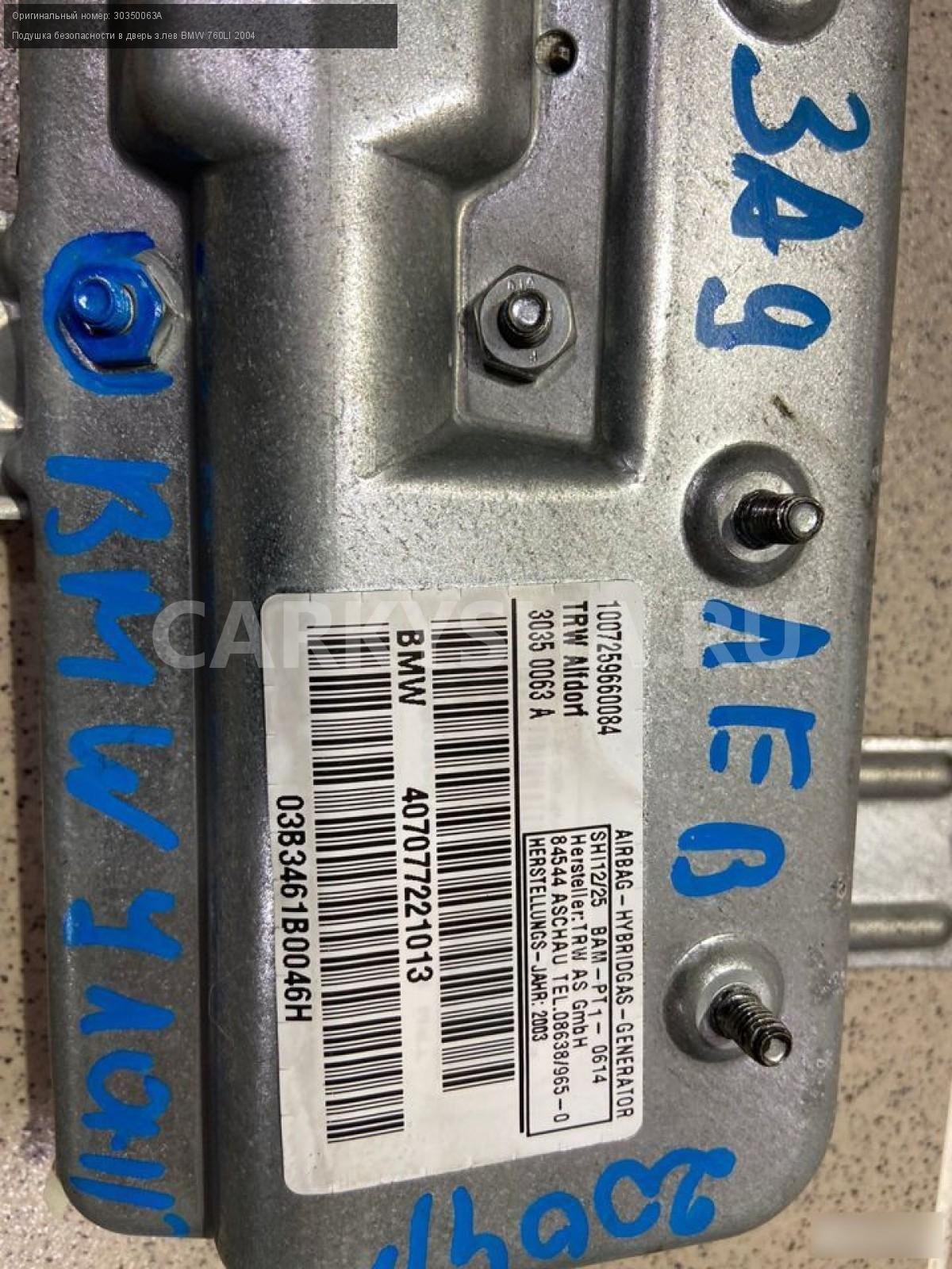 Примечание:Подушка безопасности в дверь задняя левая. Разбор БМВ 760LI 2004 год (BMW 760LI 2004 г.) двс N73B60A 6.0 л. 444.6 л. с., акпп, задний привод, кузов легковой седан, цвет бежевый, левый руль.