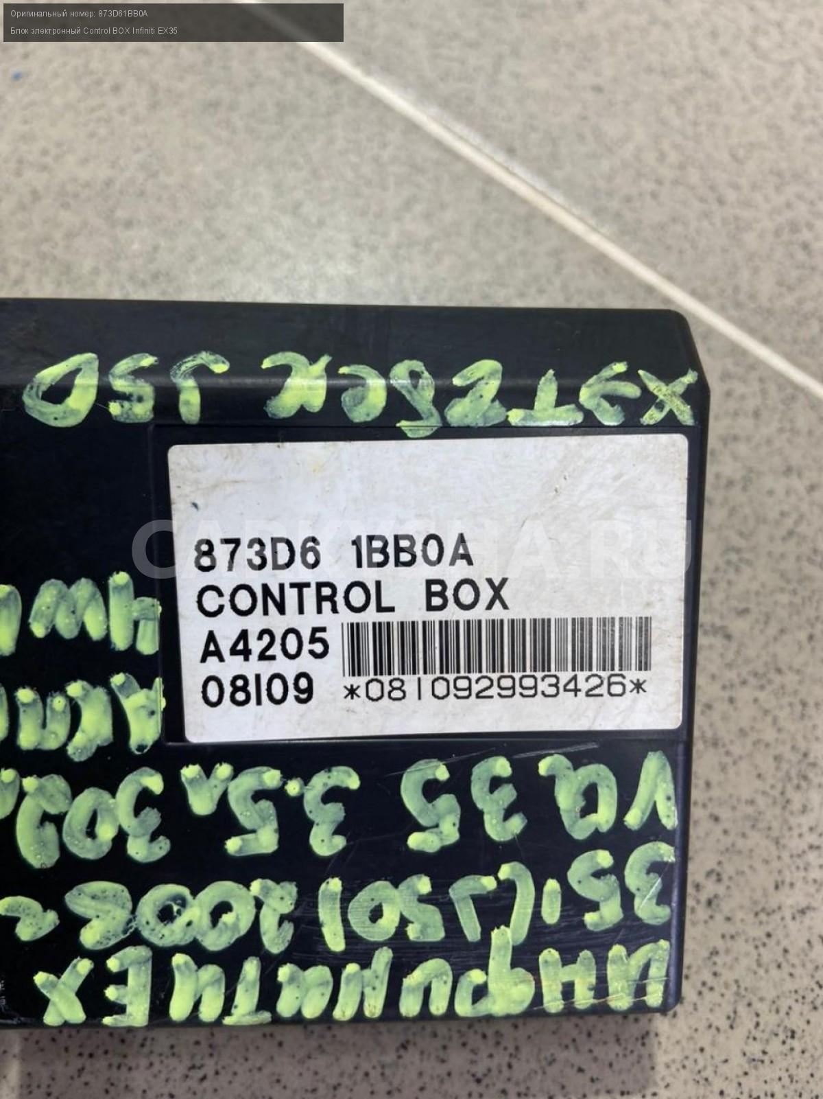 Примечание:Блок электронный Control BOX.Снят с Инфинити EX35 ELITE 2008 года (Infiniti EX35 2008 года), двс VQ35 3.5 л. 302 л. с., АКПП, полный привод (4WD), кузов легковой хэтчбек J50, левый руль, цвет чёрный