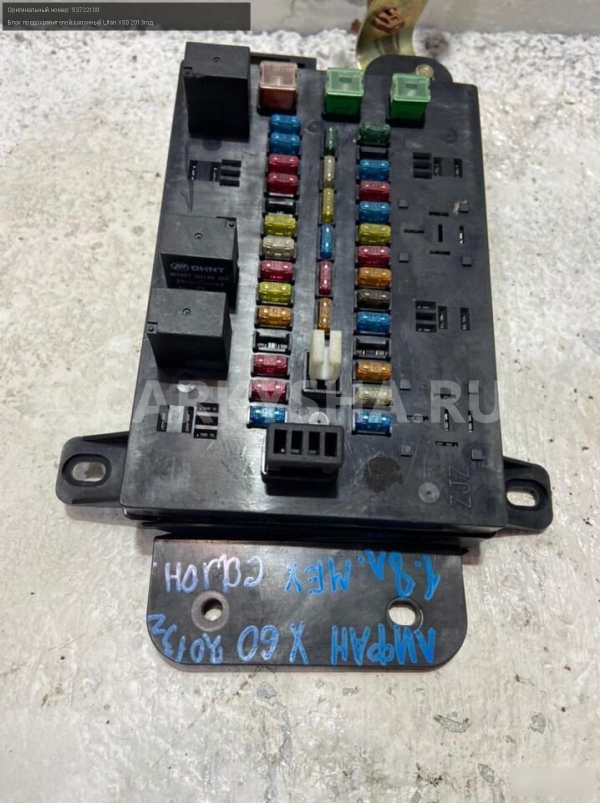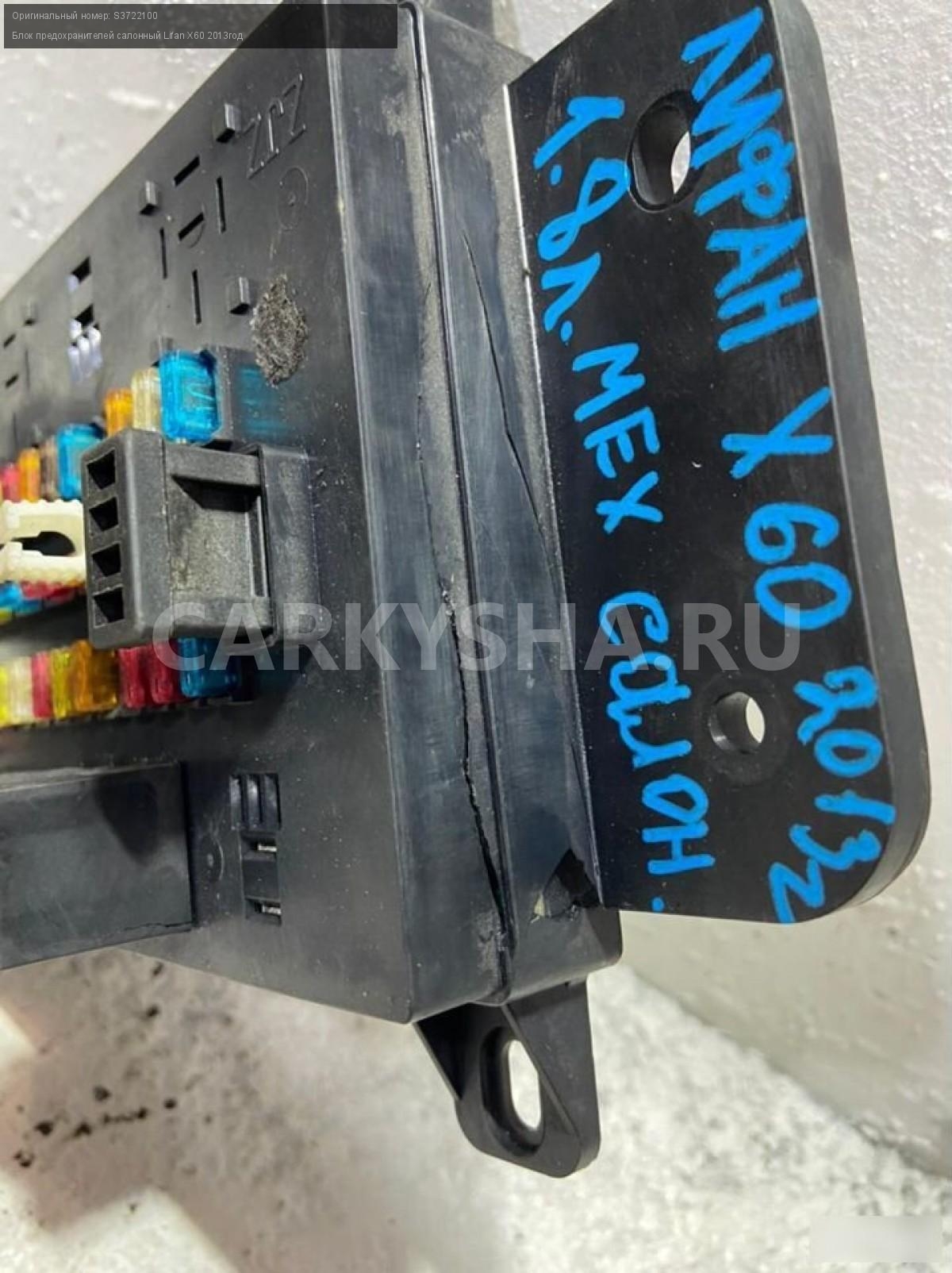 Примечание:Блок предохранителей салонный, есть трещина на корпусе смотрите фото Лифан Х60. Разбор Lifan X60 2013 г. двс LFB479Q 1.8 л., 128 л. с., механика, цвет серебро, кузов легковой универсал.