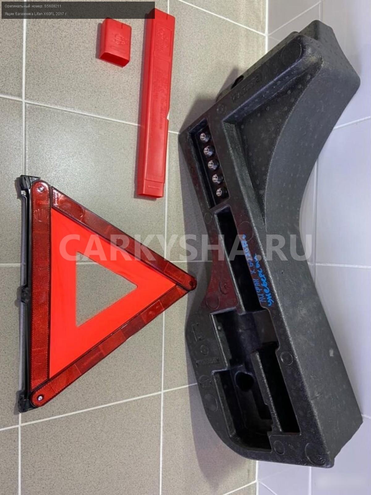 Примечание:Ящик багажника, знак аварийный .Разбор Лифан X60FL 2017 год (Lifan X60FL 2017 г.) двс LFB479Q 1.8 л. 128 л. с., МКПП, передний привод, кузов легковой универсал, цвет синий, левый руль.