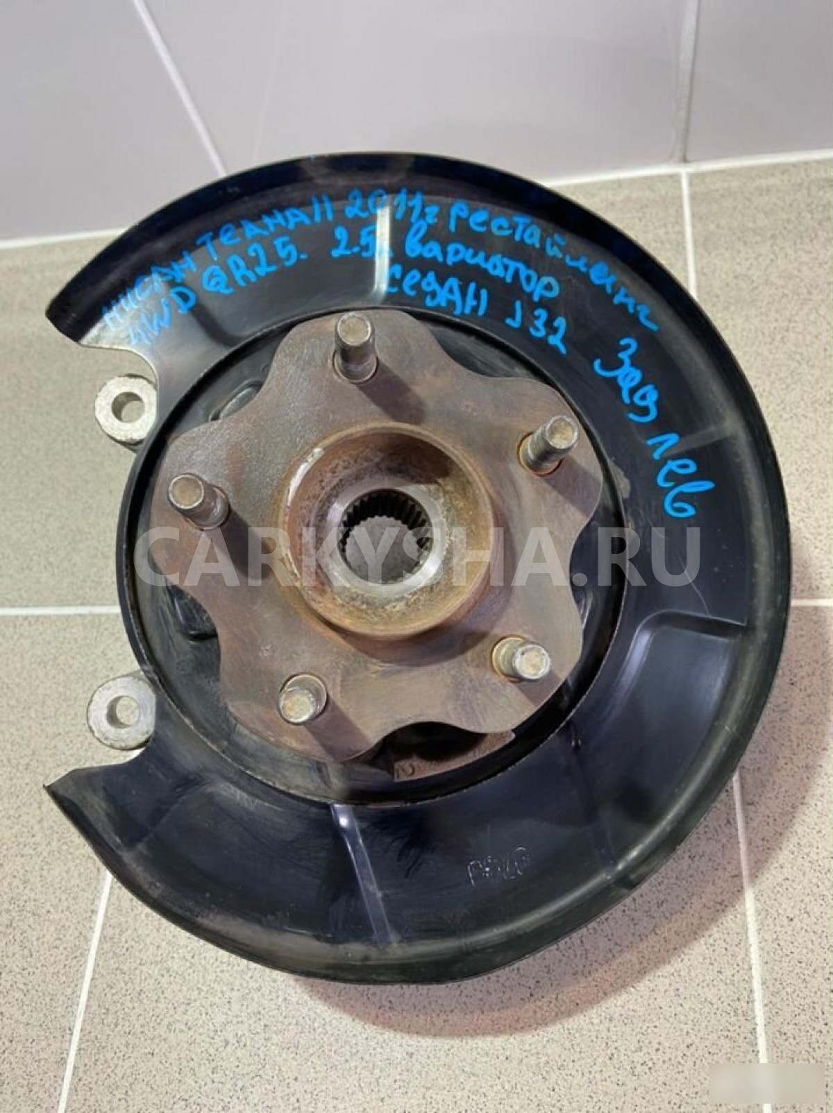 Примечание:Ступица,кулак задний левый.Разбор Ниссан Теана II, 2011 год, (Nissan Teana II 2011 г.) двс QR25 2.5 л. 167 л. с., вариатор, полный привод 4WD, кузов легковой седан J32, цвет тёмно-серый, левый руль.