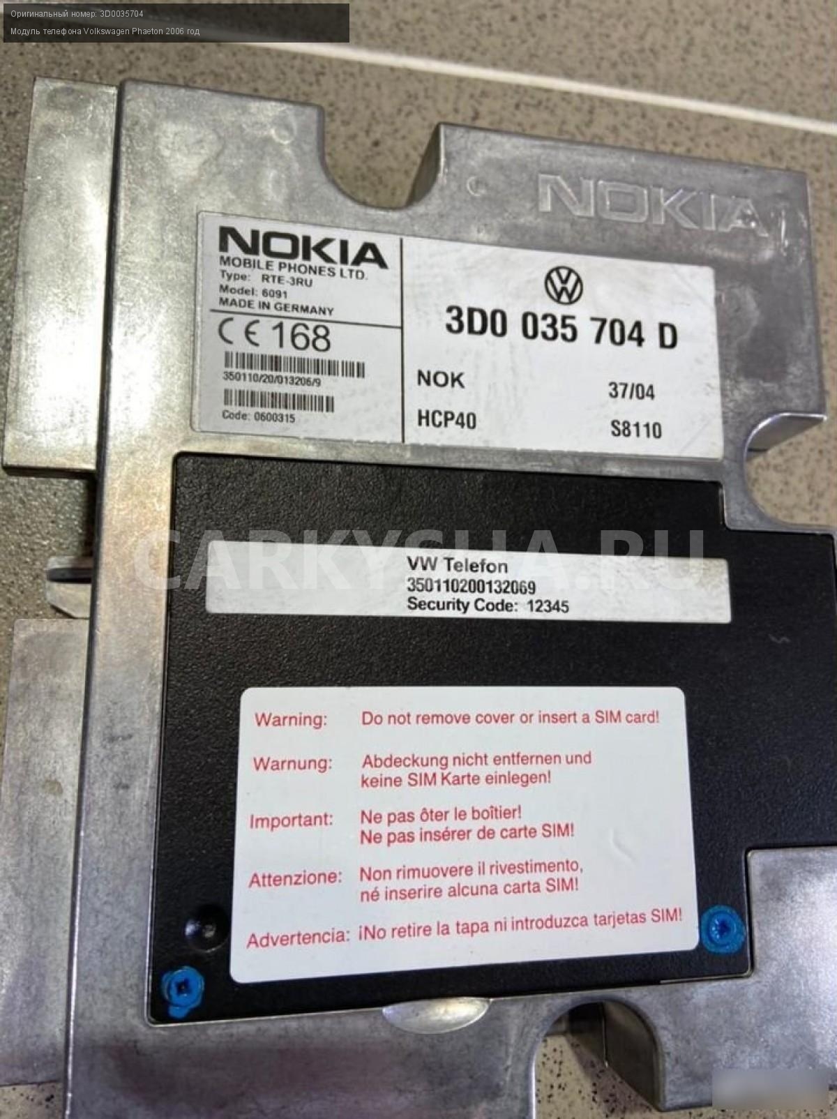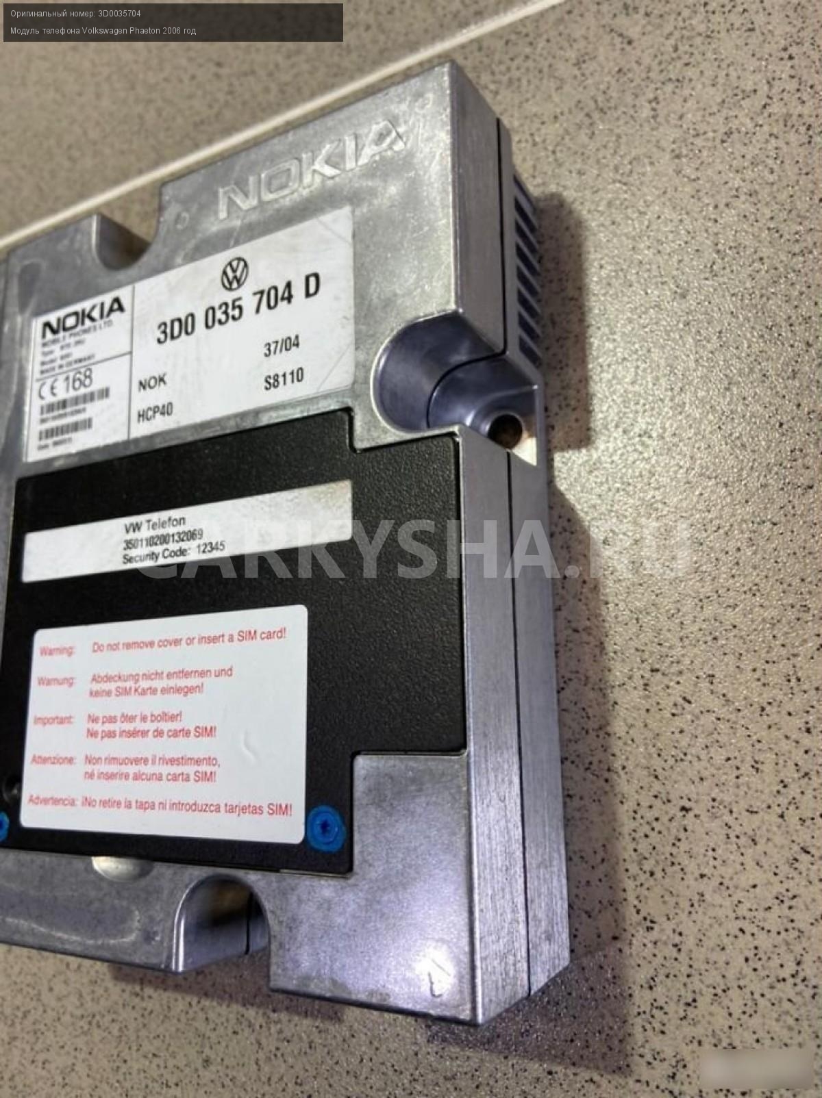 Модуль телефона Volkswagen Phaeton 2006 год Volkswagen Phaeton оригинальный номер 3D0035704