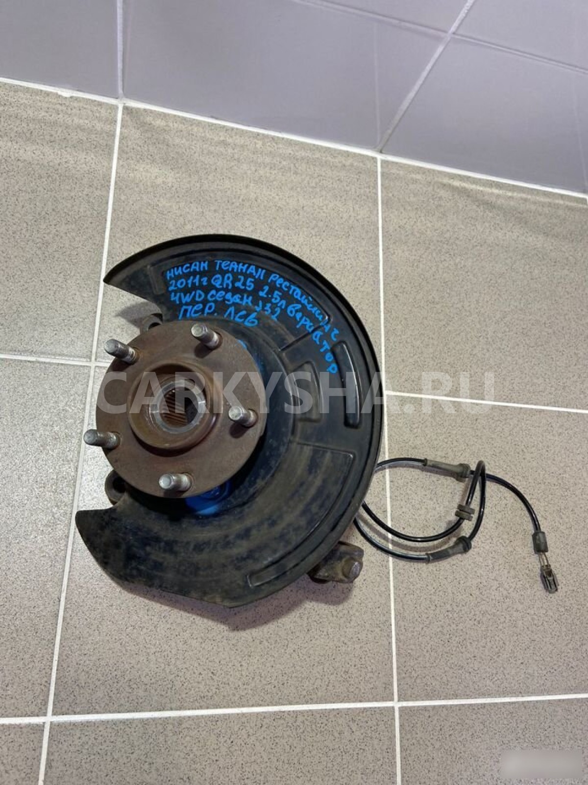 Примечание:Ступица ,кулак передний левый.Разбор Ниссан Теана II, 2011 год, (Nissan Teana II 2011 г.) двс QR25 2.5 л. 167 л. с., вариатор, полный привод 4WD, кузов легковой седан J32, цвет тёмно-серый, левый руль.